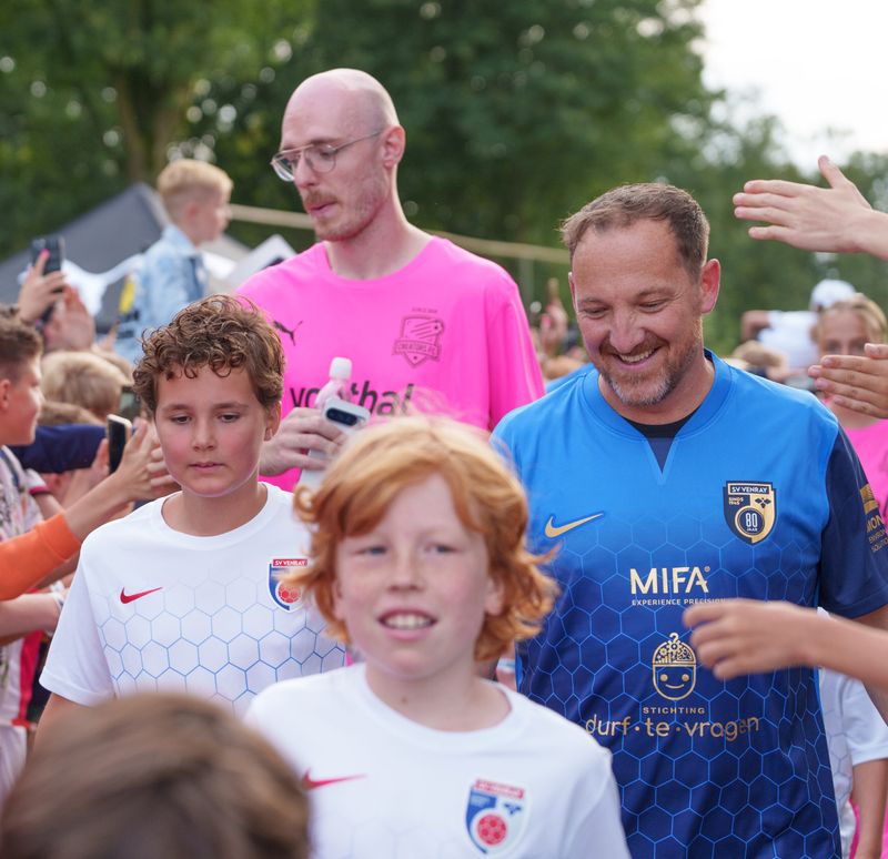 Het 80-jarig bestaan van SV Venray werd vrijdag 30 augustus afgetrapt met een legendarische voetbalwedstrijd. Samen met SV Venray vormde Stichting Durf te Vragen een team dat tegen de creators ging strijden voor het goede doel: